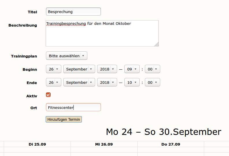 "Hinzufügen Termin" schreibt den Termin in die Datenbank und macht ihn dem Athleten zugänglich.