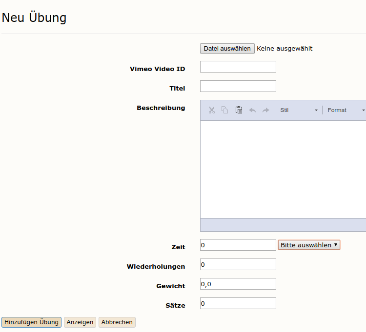 Anlegen oder Bearbeiten einer Übung