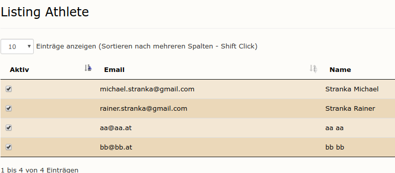 Aktiv: Ein Athlete kann nir dann teilnehmen, wenn er hier als aktiv gekennzeichnet ist. Dieses Flag lässt sich auch in der Übersicht ändern.